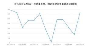 2022年7月,东风本田M-NV销量为637辆,同比下降6.32%,环比增长270.35%。2021年07月-2022年07月份,东风本田M-NV销量为5595辆,同比增长120.28%。