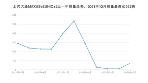 2022年7月,上汽大通MAXUS EUNIQ 5销量为71辆,同比下降75.52%,2021年07月-2022年07月份,上汽大通MAXUS EUNIQ 5销量为2325辆,同比下降13.79%。