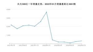 2022年7月,风光500销量为333辆,同比下降84.79%,环比增长30.08%。2021年07月-2022年07月份,风光500销量为18088辆,同比下降36.08%。