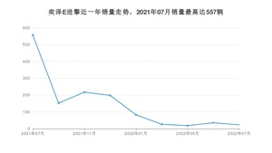 2022年7月,奕泽E进擎销量为23辆,同比下降95.87%,环比下降34.29%。2021年07月-2022年07月份,奕泽E进擎销量为1308辆,同比下降39.72%。