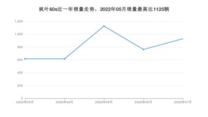 2022年7月,枫叶60s销量为929辆,环比增长22.08%。2021年07月-2022年07月份,枫叶60s销量为4047辆,