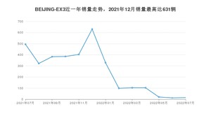 2022年7月,BEIJING-EX3销量为14辆,同比下降97.17%,环比增长16.67%。2021年07月-2022年07月份,BEIJING-EX3销量为3299辆,同比增长0.21%。