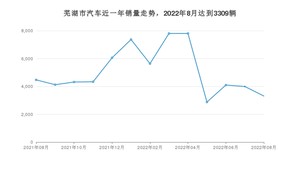 2022年8月,芜湖市汽车总销量为3309辆,同比下降25.97%,环比下降17.13%。2021年08月-2022年08月份,芜湖市总销量为66189辆,同比增长10.6%。在最近1年中,芜湖市销量在2022年03月达到最高,销量为7804辆。
