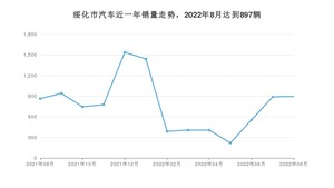 2022年8月,绥化市汽车总销量为897辆,同比增长3.82%,环比增长0.79%。2021年08月-2022年08月份,绥化市总销量为10067辆,同比下降29.81%。在最近1年中,绥化市销量在2021年12月达到最高,销量为1537辆。