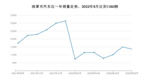 2022年8月,湘潭市汽车总销量为1360辆,同比下降21.79%,环比下降9.33%。2021年08月-2022年08月份,湘潭市总销量为22639辆,同比下降28.78%。在最近1年中,湘潭市销量在2022年01月达到最高,销量为3141辆。