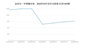 在国内市场上,金杯在2022年8月的销量为904辆,环比增长3.43%。2021年08月-2022年08月份,金杯累计销量为7806辆,较去年同期下降6.23%。