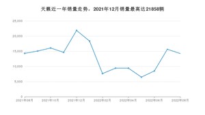 2022年8月,天籁销量为14242辆,同比下降0.45%,环比下降8.96%。2021年08月-2022年08月份,天籁销量为171589辆,同比增长8.23%。
