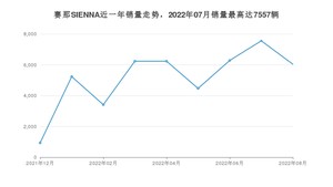 2022年8月,赛那SIENNA销量为6038辆,环比下降20.1%。2021年08月-2022年08月份,赛那SIENNA销量为46395辆,