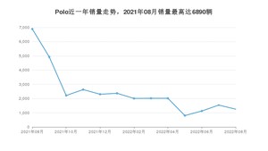 2022年8月,Polo销量为1253辆,同比下降81.81%,环比下降18.64%。2021年08月-2022年08月份,Polo销量为32094辆,同比下降50.48%。