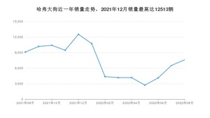 2022年8月,哈弗大狗销量为7614辆,同比下降16.25%,环比增长16.99%。2021年08月-2022年08月份,哈弗大狗销量为96003辆,同比增长12.81%。