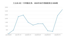 2022年8月,大众ID.3销量为3209辆,环比增长34.44%。2021年08月-2022年08月份,大众ID.3销量为16751辆,