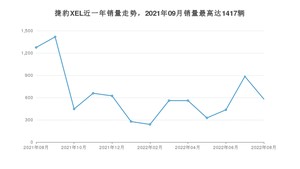 2022年8月,捷豹XEL销量为580辆,同比下降54.51%,环比下降34.39%。2021年08月-2022年08月份,捷豹XEL销量为8277辆,同比下降46.06%。