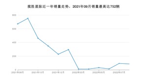 2022年8月,揽胜星脉销量为86辆,同比下降87.2%,环比下降7.53%。2021年08月-2022年08月份,揽胜星脉销量为3003辆,同比下降57.5%。