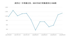 2022年8月,威然销量为1406辆,同比增长21%,环比增长9.16%。2021年08月-2022年08月份,威然销量为13258辆,同比下降31.02%。