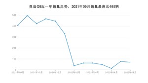 2022年8月,奥迪Q8销量为69辆,同比下降83%,环比下降10.39%。2021年08月-2022年08月份,奥迪Q8销量为2932辆,同比下降51.98%。