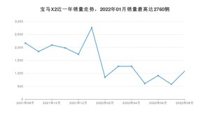 2022年8月,宝马X2销量为1084辆,同比下降49.88%,环比增长89.18%。2021年08月-2022年08月份,宝马X2销量为19124辆,同比下降34.7%。