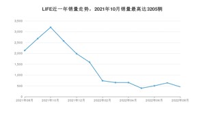 2022年8月,LIFE销量为454辆,同比下降78.74%,环比下降28.95%。2021年08月-2022年08月份,LIFE销量为18211辆,同比下降1.16%。