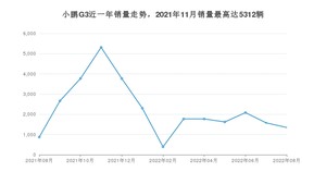 2022年8月,小鹏G3销量为1346辆,同比增长54.18%,环比下降14.7%。2021年08月-2022年08月份,小鹏G3销量为29251辆,同比增长52.82%。