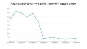 2022年8月,天逸 C5 AIRCROSS销量为68辆,同比下降87.92%,环比增长11.48%。2021年08月-2022年08月份,天逸 C5 AIRCROSS销量为4277辆,同比下降59.94%。