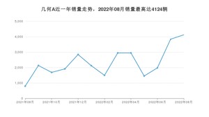 2022年8月,几何A销量为4124辆,同比增长418.74%,环比增长7.48%。2021年08月-2022年08月份,几何A销量为30273辆,同比增长331.55%。