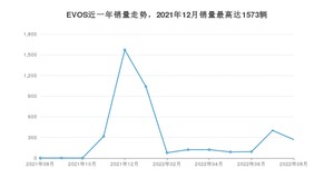 2022年8月,EVOS销量为268辆,同比增长26%,环比下降33.33%。2021年08月-2022年08月份,EVOS销量为4105辆,同比增长410%。