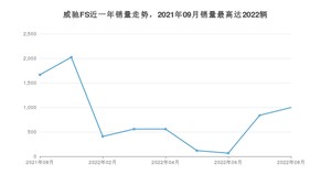 2022年8月,威驰FS销量为997辆,同比下降40.12%,环比增长18.83%。2021年08月-2022年08月份,威驰FS销量为7232辆,同比下降69.58%。