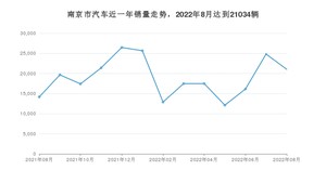 2022年8月,南京市汽车总销量为21034辆,同比增长48.42%,环比下降15.28%。2021年08月-2022年08月份,南京市总销量为246740辆,同比下降10.68%。在最近1年中,南京市销量在2021年12月达到最高,销量为26467辆。