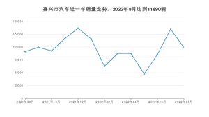 2022年8月,嘉兴市汽车总销量为11890辆,同比增长8.79%,环比下降26.5%。2021年08月-2022年08月份,嘉兴市总销量为150627辆,同比下降0.36%。在最近1年中,嘉兴市销量在2021年12月达到最高,销量为16391辆。