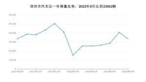 2022年8月,深圳市汽车总销量为33092辆,同比下降1.76%,环比下降18.78%。2021年08月-2022年08月份,深圳市总销量为439871辆,同比下降10.49%。在最近1年中,深圳市销量在2021年12月达到最高,销量为50377辆。