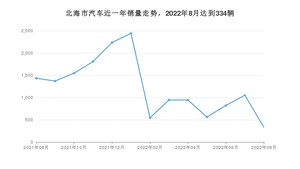 2022年8月,北海市汽车总销量为334辆,同比下降76.69%,环比下降68.28%。2021年08月-2022年08月份,北海市总销量为16046辆,同比下降18.6%。在最近1年中,北海市销量在2022年01月达到最高,销量为2441辆。