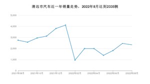 2022年8月,清远市汽车总销量为2335辆,同比下降14.97%,环比下降4.93%。2021年08月-2022年08月份,清远市总销量为32225辆,同比下降17.51%。在最近1年中,清远市销量在2022年01月达到最高,销量为4110辆。