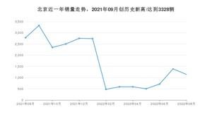 在国内市场上,北京在2022年8月的销量为1143辆,同比下降58.94%,环比下降17.89%。2021年08月-2022年08月份,北京累计销量为21878辆,较去年同期下降22.7%。