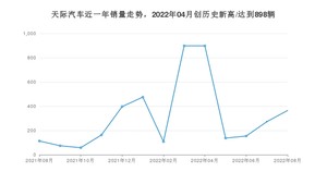 2022年8月,全国汽车总销量为1416087辆,天际汽车品牌的销量占比为0.03%,在所有汽车企业销量排名中位列第79名。2021年08月-2022年08月份,全国汽车总销量为19082778辆,天际汽车品牌的销量占比为0.02%,在所有汽车企业销量排名中位列第90名。