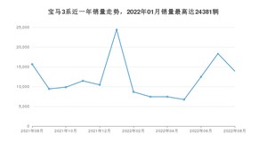 2022年8月,宝马3系销量为13896辆,同比下降11.16%,环比下降24.19%。2021年08月-2022年08月份,宝马3系销量为156138辆,同比下降24.21%。
