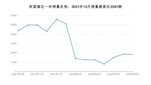 2022年8月,欧蓝德销量为1817辆,同比下降58.53%,环比下降2.68%。2021年08月-2022年08月份,欧蓝德销量为39188辆,同比下降39.27%。