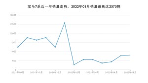 2022年8月,宝马7系销量为805辆,同比下降35.29%,环比增长4.01%。2021年08月-2022年08月份,宝马7系销量为14013辆,同比下降49.16%。