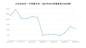 2022年8月,北京BJ40销量为1108辆,同比下降53.03%,环比下降15.81%。2021年08月-2022年08月份,北京BJ40销量为19074辆,同比下降16.21%。