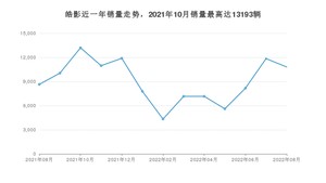 2022年8月,皓影销量为10807辆,同比增长25.02%,环比下降8.78%。2021年08月-2022年08月份,皓影销量为117596辆,同比下降37.7%。