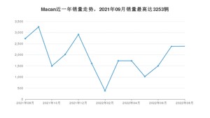2022年8月,Macan销量为2382辆,同比下降12.78%,环比增长0.17%。2021年08月-2022年08月份,Macan销量为25139辆,同比下降29.3%。