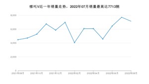 2022年8月,哪吒V销量为7140辆,同比增长59.91%,环比下降7.43%。2021年08月-2022年08月份,哪吒V销量为76090辆,同比增长187.93%。