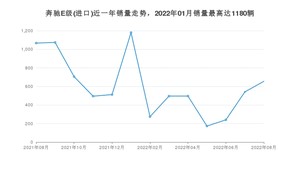 2022年8月,奔驰E级(进口)销量为655辆,同比下降38.61%,环比增长21.07%。2021年08月-2022年08月份,奔驰E级(进口)销量为7908辆,同比下降45.58%。