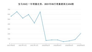 2022年8月,宝马X6销量为214辆,同比下降61.85%,环比增长151.76%。2021年08月-2022年08月份,宝马X6销量为4027辆,同比下降46.97%。