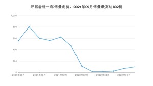 2022年8月,开拓者销量为97辆,同比下降82.65%,环比增长42.65%。2021年08月-2022年08月份,开拓者销量为3933辆,同比下降51.61%。