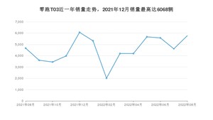 2022年8月,零跑T03销量为5775辆,同比增长23.77%,环比增长25.33%。2021年08月-2022年08月份,零跑T03销量为59101辆,同比增长111.06%。