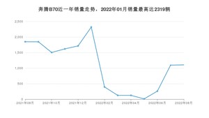 2022年8月,奔腾B70销量为1104辆,同比下降40.26%,环比增长0.73%。2021年08月-2022年08月份,奔腾B70销量为13964辆,同比下降2.7%。