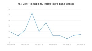 2022年8月,宝马M3销量为30辆,同比下降21.05%,环比增长11.11%。2021年08月-2022年08月份,宝马M3销量为452辆,同比增长75.19%。