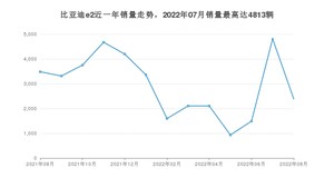 2022年8月,比亚迪e2销量为2386辆,同比下降31.5%,环比下降50.43%。2021年08月-2022年08月份,比亚迪e2销量为38205辆,同比增长42.47%。
