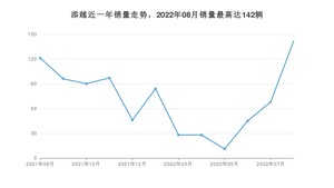2022年8月,添越销量为142辆,同比增长17.36%,环比增长108.82%。2021年08月-2022年08月份,添越销量为856辆,同比下降55.25%。