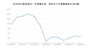 2022年8月,本田CR-V新能源销量为386辆,同比下降66.92%,环比下降11.26%。2021年08月-2022年08月份,本田CR-V新能源销量为11137辆,同比下降68.96%。