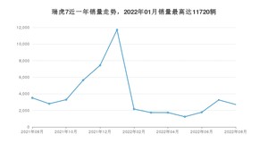 2022年8月,瑞虎7销量为2706辆,同比下降22.86%,环比下降17.04%。2021年08月-2022年08月份,瑞虎7销量为49020辆,同比增长4.1%。